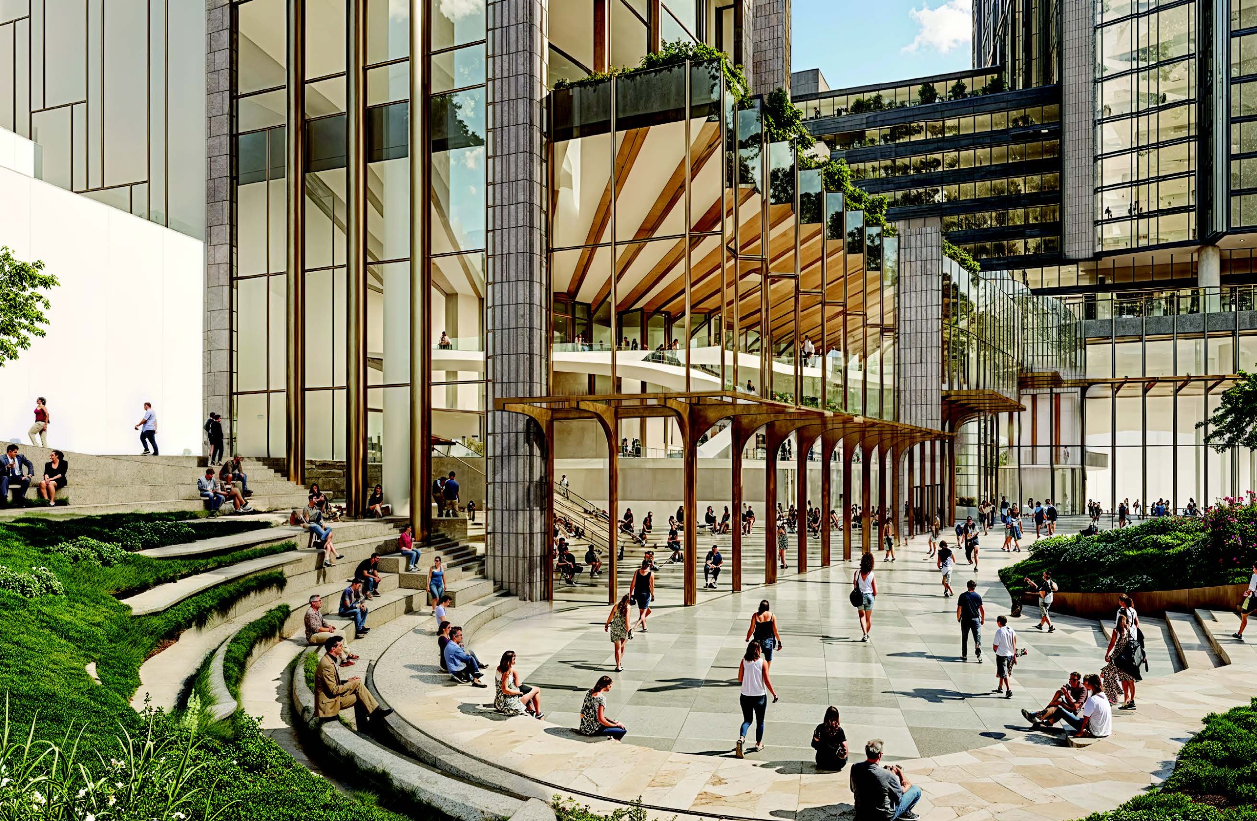 - The Proposal transforms a sunken and disconnected plaza into a cohesive network of indoor and outdoor open spaces, including approximately 530 square metres of new on-site parkland.