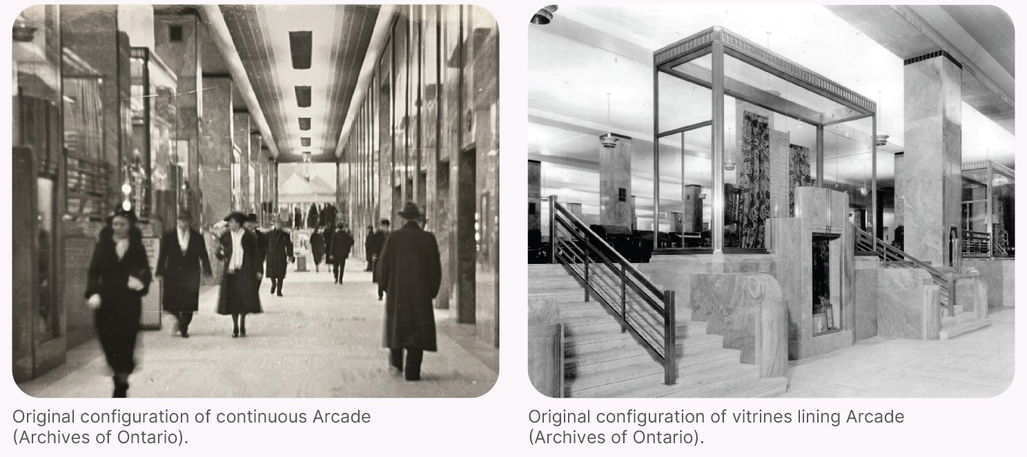 The existing vitrines, relocated over time, will be repaired and moved back to their original locations throughout the Arcade. New, historically accurate replicas of missing vitrines will be crafted, based on archival documentation and the design of the originals, and will be reinstated to their original locations in the Arcade.💬 Let Us Know!