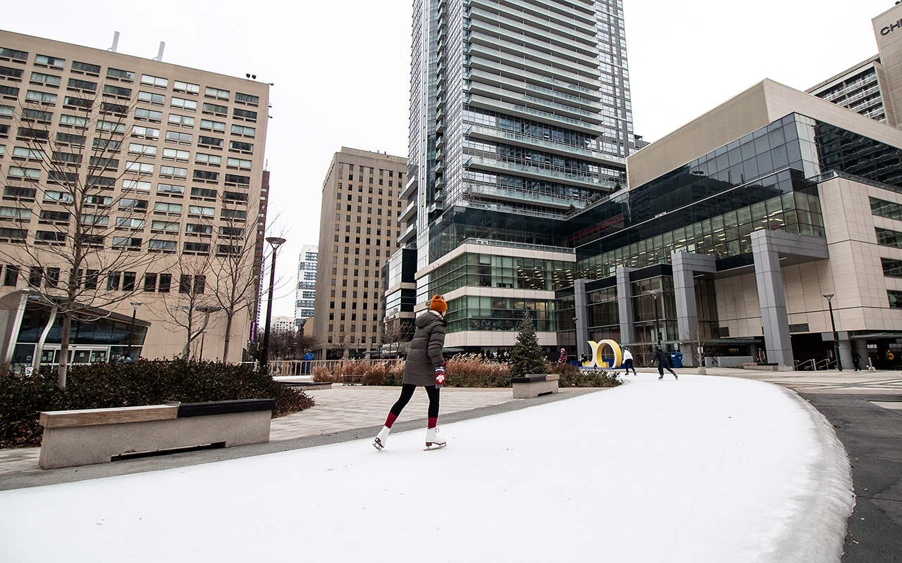 In the near term, the City of Toronto is replacing the grass at the north entrance of College Park with artificial turf and adding new plantings and seating, along with a pathway connecting the north entrance to the skate trail.